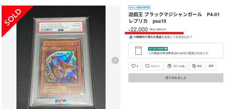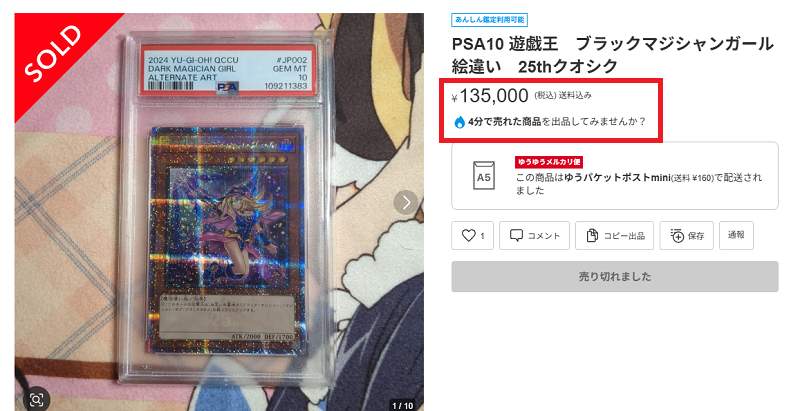メルカリで直近に売れたPSA10の同一カードを調べてみました。