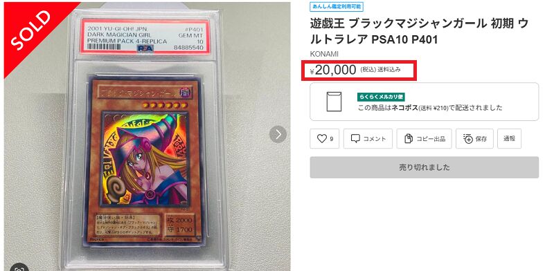 ここでは、ブラック・マジシャン・ガールの人気カードPSA10がどれくらい高額なのか、実際に出品されているカードをベースに比較していきます。